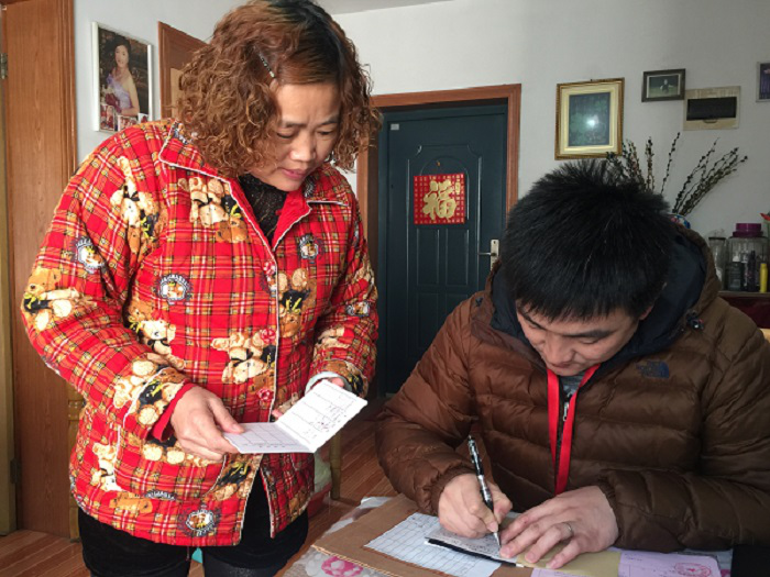2018年1月12日下午,区住建局住房保障工作人员前往五星家园廉租住房家庭开展上门服务工作。此次上门服务的对象是王女士家庭,王女士家庭为低保重残家庭,行动不便,无法正常到窗口办理年审手续。因此工作人员主动上门,热情耐心的帮她完成了廉租房年审的一切手续,同时将续约协议和配租证送到王女士手里,持续为她落实住房保障。