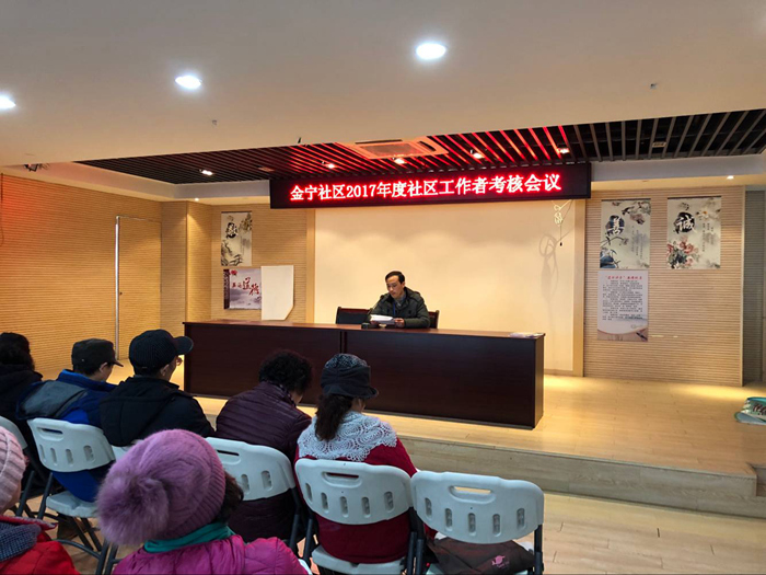 1月18日,江海街道金宁社区召开年度社区工作述职考核测评会议,邀请了四十名余名居民代表作为“考官”,给社区一年来的工作进行打分。